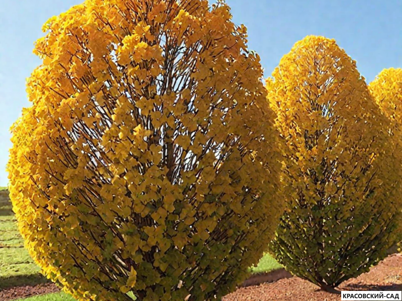 Осенью его листва приобретает тёплые жёлто‑оранжевые оттенки, добавляя красок саду.