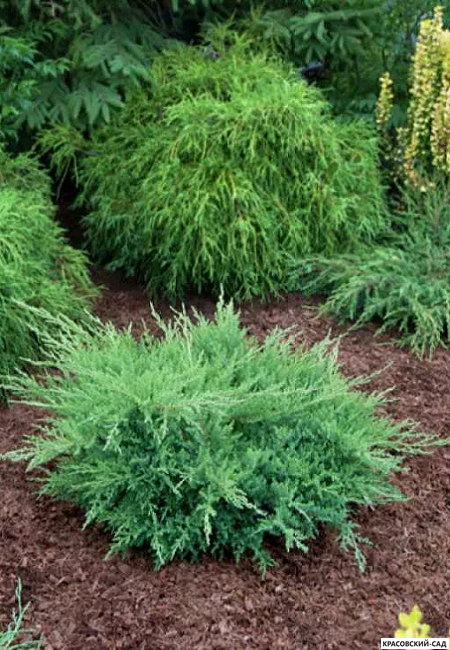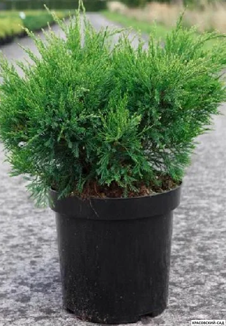Можжевельник пфитцериана Компакта (Juniperus x pfitzeriana Compacta) - декоративный сорт с компактной пирамидальной формой и серебристо-голубой хвоей.
