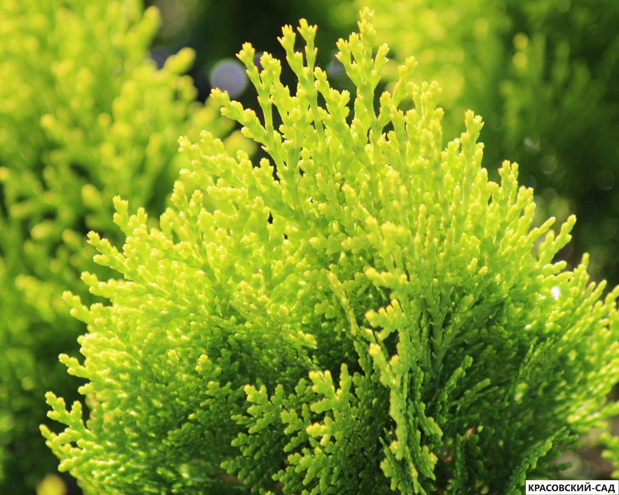 Живописная зеленая Туя Ауреа Нана станет ярким украшением любого сада или приусадебного участка.