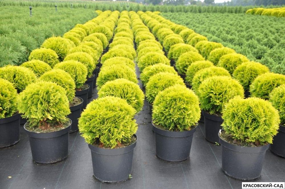 Питомник Красовский-Сад предлагает разнообразные сорта туи, включая туи Мирьям, которые идеально подходят для создания живых изгородей, аллей и зеленых насаждений.